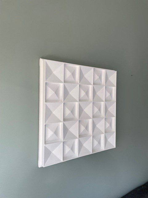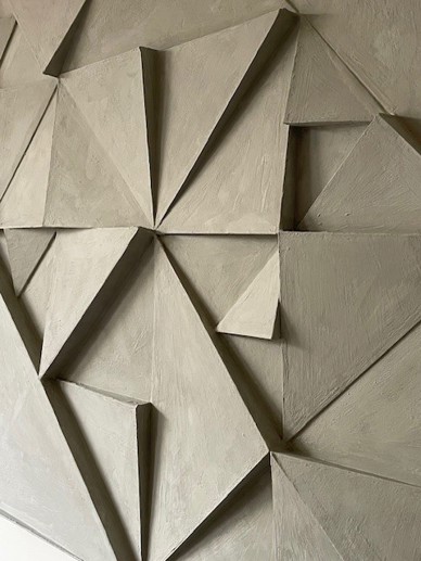 Gallium bestaat uit diverse 3D-reliëf driehoeken. Deze zorgen voor scherpe lijnen en schaduwen, die afhankelijk van lichtinval of de manier waarop het kunstwerk opgehangen is, een ander beeld geven.